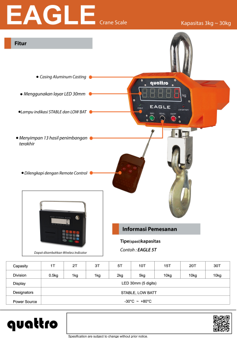Timbangan gantung kapasitas besar untuk segala medan.